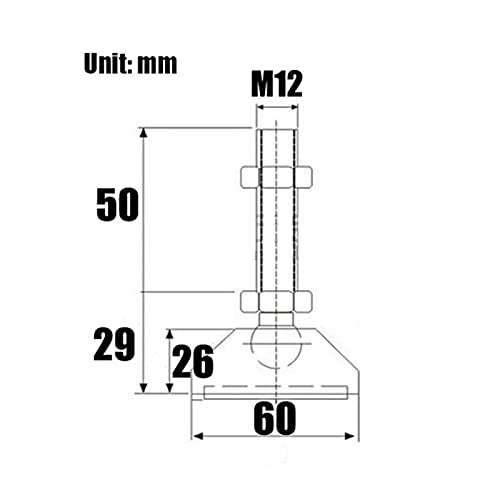 HHOSBFSS Set da 10 Pezzi di Piedini Regolabili Base in Nylon Rinforzato Piedini incernierati Piedini Piedini di Regolazione Piedini, Base 2,4 Pollici di Diametro (Size: 60*M12*50mm)