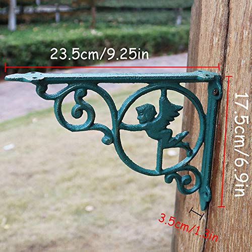 HHTJ Reggimensola Ferro Battuto Vintage, Staffa per Mensola Decorata, Staffe Mensole da Muro Fai-da-Te, Ghisa, Stile retrò, 2 Pezzi (23,5 x 17,5, Verde)