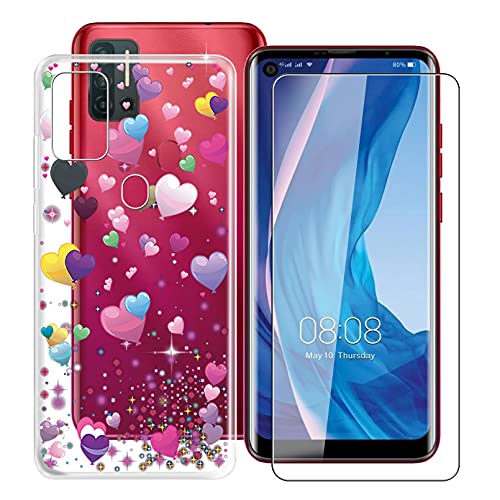 HHUAN Cover per Ulefone Note 11P (6.55") con Vetro Temperato in Pellicola Protettiva, Trasparente Ultra Morbida Silicone TPU Bumper Case Antiurto e AntiGraffio Protettiva Custodia - YQ29