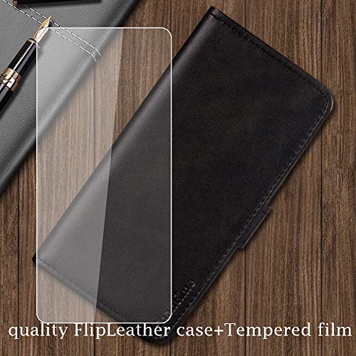 HHUAN Custodia Flip per Blackview BV9900E (5.84") + Pellicola Protettiva in Vetro Temperato, Classico Flip Protezione Cover Funzione Staffa Portafoglio Case Caso - Black