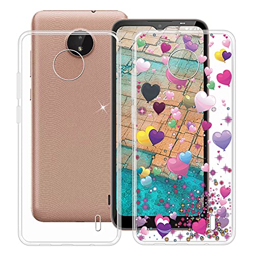 HHUAN Custodia per Nokia C20 (6.52"), 2 Pezzi Trasparente Anti Graffio in TPU Custodia Protettiva, Ultra Sottile Bumper Morbida Silicone Cover per Nokia C20 - Clear + Motivo