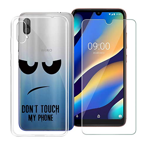 HHUAN Custodia per Wiko View 3 Lite Trasparente Cover Ultra Morbida Silicone TPU Non toccarmi Bumper Case + Pellicola Protettiva in Vetro Temperato per Wiko View 3 Lite (6.09")