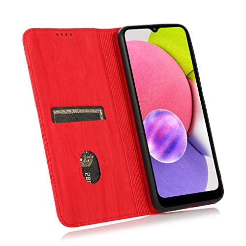 HHUIWIND Custodia Samsung Galaxy A03s + Pellicola Vetro Temperato,Cover in pelle Magnetica Portafoglio Samsung Galaxy A03s,Premium Flip Case Per Samsung Galaxy A03s - Rosso
