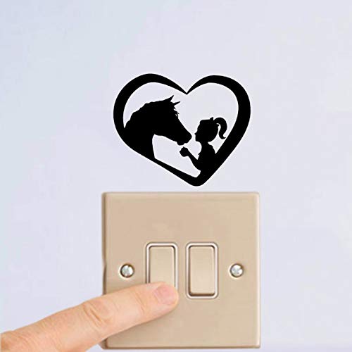 Hhuycvff vwuig Adesivo murale PVC Simbolo del Cuore Amore Ragazza con Cavallo Animali Domestici Adesivi per interruttori Animali 1