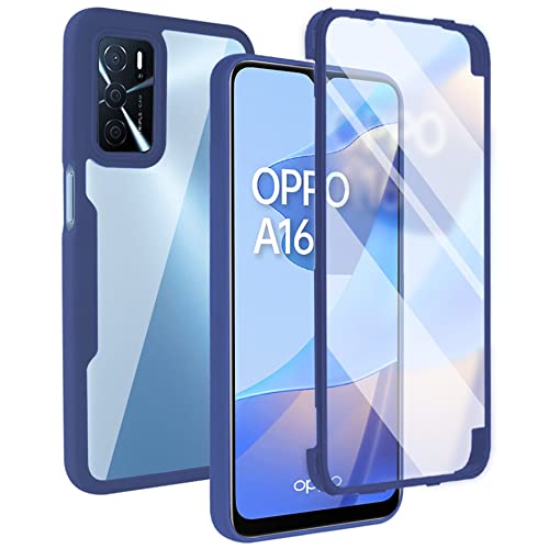 Hi-Case Custodia Trasparente per Oppo A16/A16s/A54s con Protezione per Display Integrata, Dual Layer Ibrida 360° Full Body Antiurto Protettiva Cover, Blu