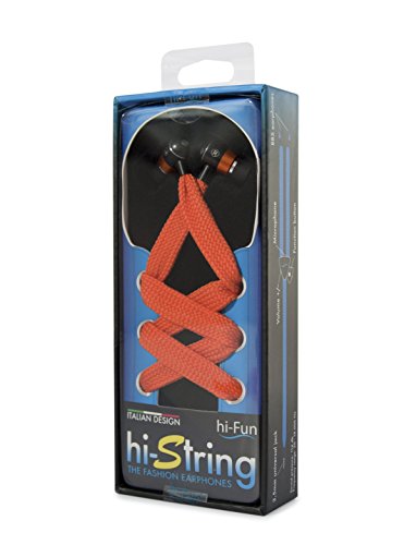 Hi-Fun Hi-String Auricolari Antigroviglio con Cavo a Forma di Stringa Interamente in Tessuto e Microfono, Arancione