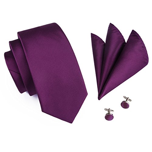 Hi-Tie - Cravatta da uomo in tessuto jacquard di seta, fazzoletto quadrato da taschino e gemelli - confezione regalo 236 Taglia unica