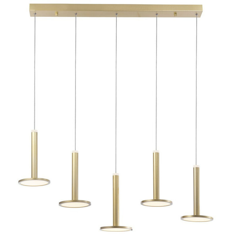 Merano Hialeah Plafoniera a 5 luci a sospensione in alluminio oro satinato LED 53W 1967Lm 3000K | Finitura: ottone dorato | Materiale: alluminio | Classificazione IP: IP20 | Altezza: 150cm | Lunghezza: 107 cm | Larghezza: 15 cm | Tipo di lampada: LED integrato | Lampadina inclusa: Sì | Dimmerabile: No | Kelvin: 3000 K | Lumen: 1967lm | Peso: 5 kg | Potenza (massima): 53W