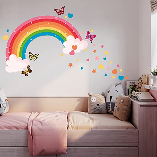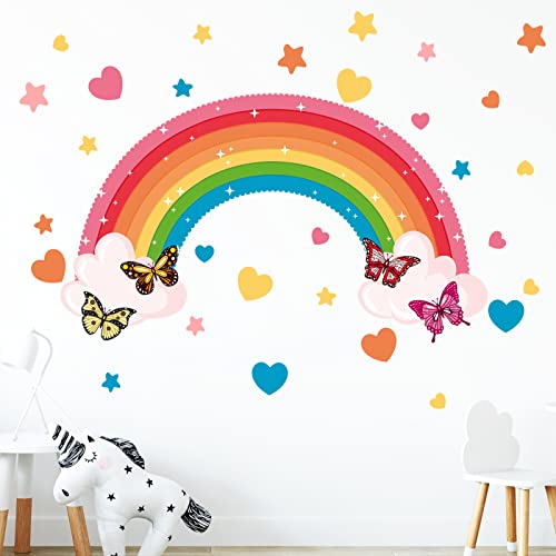 Hianjoo Adesivi da Parete Arcobaleno Bambini Cuore Colorato Stelle Nuvole Farfalle Adesivi Murali per Bambini Ragazze Asilo Nido Camera da Letto Soggiorno Stickers Murali Decor Home Art Decoration