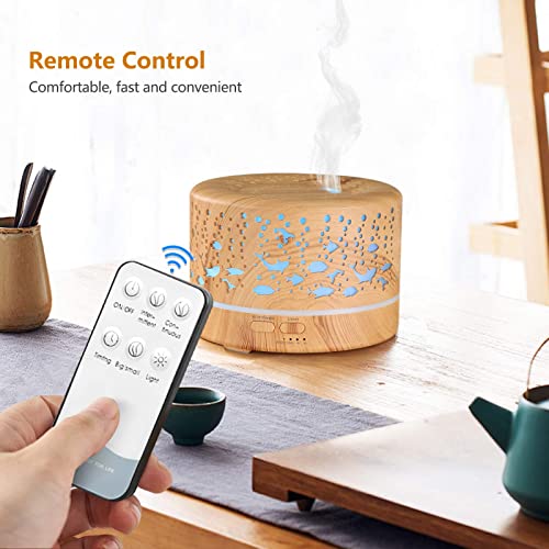 Hianjoo 700 ml Diffusore di Oli Essenziali con Telecomando, Umidificatore Ultrasuoni Diffusore di Oli Essenziali con 7 LED Colori per SPA,Yoga,Camera da Letto (Marrone Chiaro)
