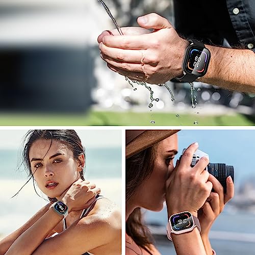 4. ⌚ 【Antiurto e antigraffio】 Realizzata in PC di alta qualità e resistente ai graffi, questa custodia copre l'intera parte anteriore e i bordi curvi dell'orologio, offrendo una protezione completa per l'orologio da graffi, cadute e urti.