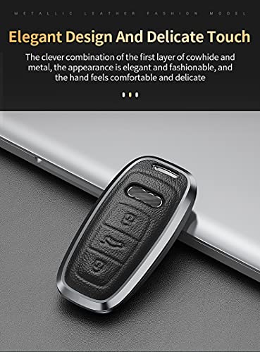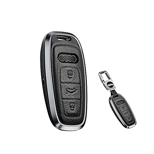 HIBEYO Custodia per Chiave Auto, Adatta per Audi A3 A6 A7 A8 A6L A8L RS6 RS7 S3 S6 S7 SQ7 SQ8 C8 Q8 Q7 E-Tron Custodia Protettiva per Telecomando in Pelle di Alluminio Nero