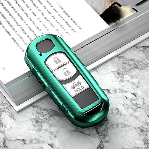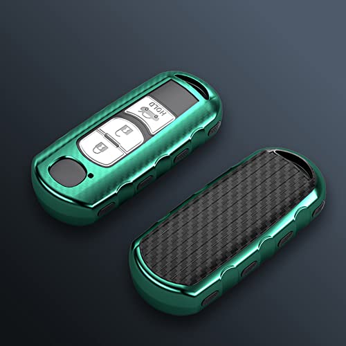HIBEYO Custodia per Chiave Auto Adatta per Mazda 2 3 5 6 MX5 CX-5 CX-7 CX-9 BT50 Miata MX-5 Xedos 9 TPU Custodia Portachiavi Telecomando in Fibra di Carbonio Verde