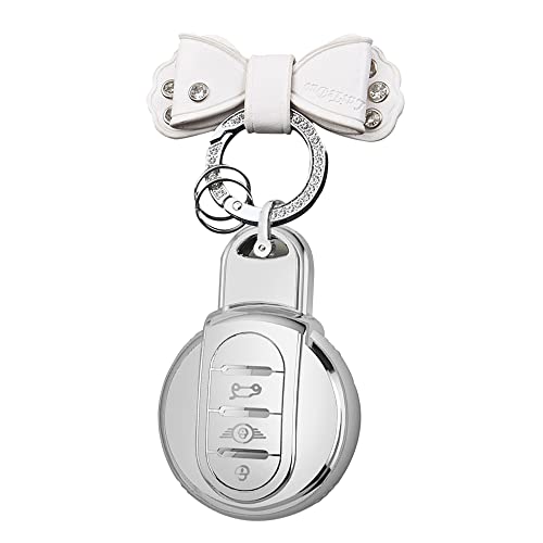 HIBEYO Custodia per chiave dell'auto, adatta per mini portachiavi per BMW Mini Cooper F54 F55 F56 F57 F60 Cabrio Countryman, custodia per chiavi, telecomandi, portachiavi bianco