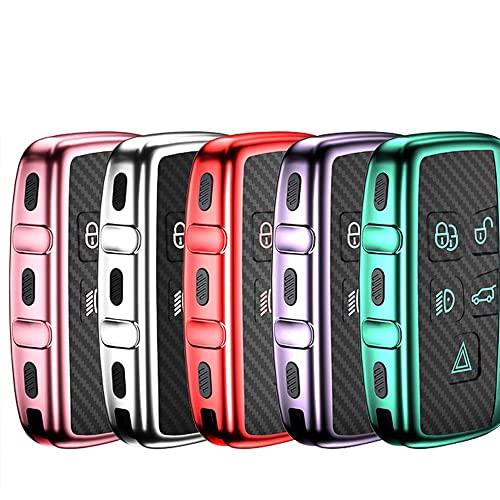 HIBEYO Custodia per Chiave Auto Range Rover in Carbonio TPU per Land Rover Sport Evoque Discovery LR4 Jaguar XF XJ XE F Type Keyless 5 Tasti Auto Cover Rosa