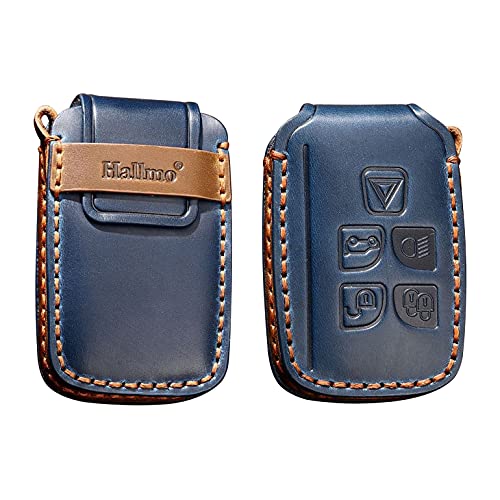 HIBEYO Custodia per Chiave Auto Smart Adatta per Land Rover in Pelle con Telecomando per Range Rover Sport Evoque Vogue Jaguar XF XJ XE Portachiavi con Scatola A Blu