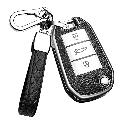 HIBEYO Custodia Protettiva per Chiave Auto, Adatta per Peugeot DS3 DS4 DS5 C4 per Peugeot 206 207 208 301, Custodia per Chiavi in Pelle TPU, Colore Argento
