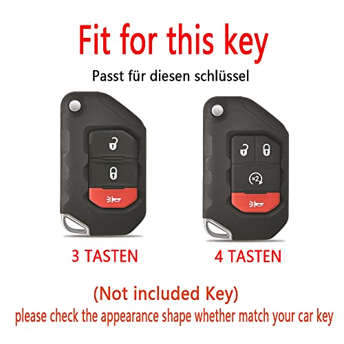 Compatibilità: custodia per chiave dell'auto adatta per Jeep Wrangler JL 2018-2022, Gladiator JT 2020-2022. (Controllare la forma delle chiavi, se sono diverse, non saranno compatibili, quindi si prega di verificare prima dell'acquisto se la chiave della macchina è uguale a quella dell'immagine 2)