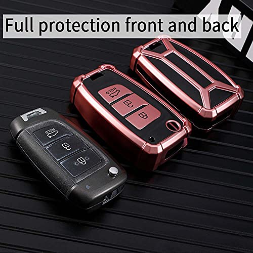 HIBEYO Custodia Smart per Chiave Auto Adatta per Hyundai Solaris Elantra i30 i35 i40 Tucson Kona Celesta Santa Fe Verna Genesis Portachiavi Cover TPU Rosso