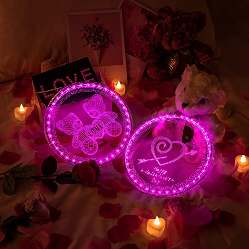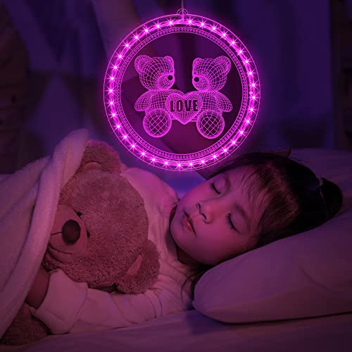 Hiboom Luci per Finestre di San Valentine, 7,9 Pollici Decorazioni Rosa di Valentine Luci con Ganci a Ventosa, Luci a LED per Finestre a Forma d'Amore 3D per Interni ed Esterni (Orsetto)
