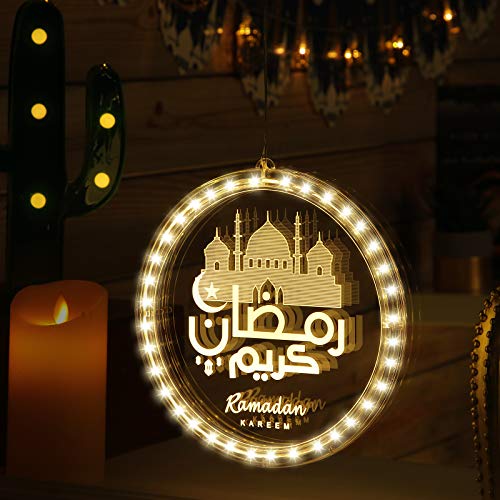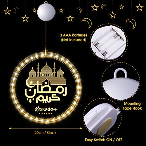 Quantità e dimensioni: ti forniamo 1 pezzo di luci decorative Eid che misura ca. 20 cm/ 7,9 pollici di diametro e la confezione viene fornita con un gancio a ventosa, di dimensioni adeguate per decorare la tua porta d'ingresso o veranda, mostrando il tuo benvenuto, amico e benedizione ai tuoi amici e familiari