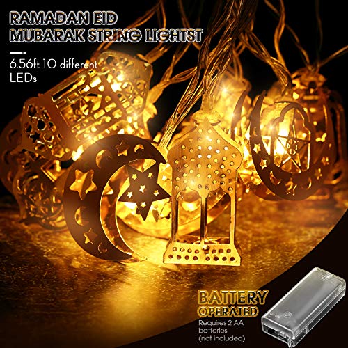 Hiboom Luci Stringa Fate Eid Al Adha, 6,56 Feet 10 LED Lampada Lanterna a Cherosene Eid Luna Stella, Funzionamento a Batteria per Feste all'Aperto Decoro Casa Ramadan (Colore Bianco Caldo)