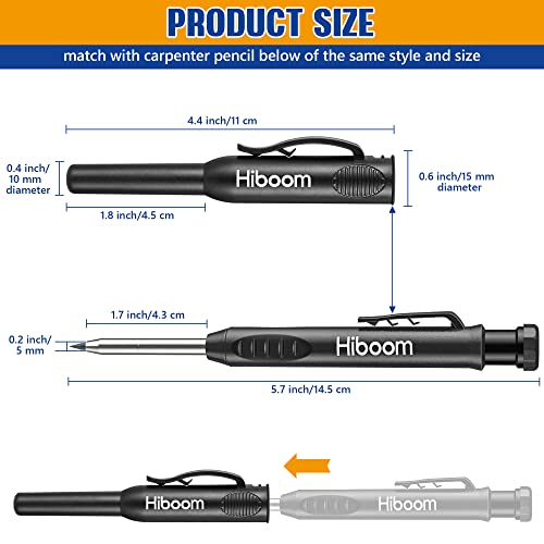 Hiboom Matita da Carpentiere Solida con Supporto per Portamine e 6 Ricariche, Matita per la Lavorazione del Legno a Fori Profondi con Temperamatite Incorporato per Carpentieri Scrittori