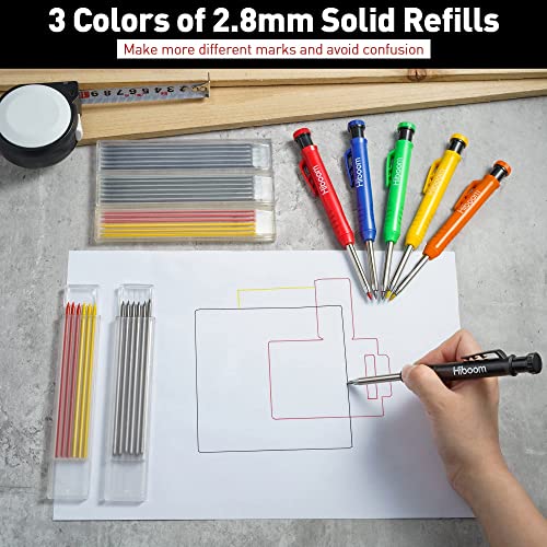 Hiboom Set di 6 Matite da Carpentiere Marcatori Meccanici con Punta per Fori Profondi a Naso Lungo con Temperamatite e 36 Ricariche da 2,8 mm per Lavorazione del Legno e Disegni, Brevetto di Disegno