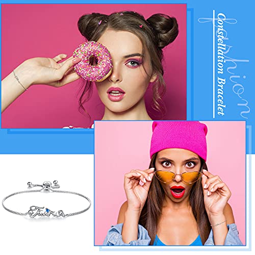 Hicarer Bracciale in argento con costellazione a dodici ciondoli zodiacali, braccialetto con cristalli, regolabile, astrologia, oroscopo cubo, per donne e ragazze, Acciaio inossidabile