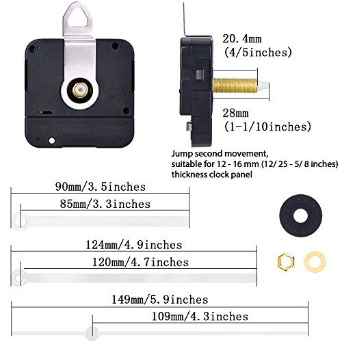 Il secondo movimento di salto è adatto a 12 - 16 mm/ 12/25 - 5/8 pollici di spessore del pannello dell'orologio