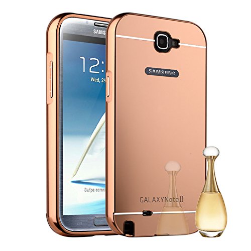 HICASER Alluminio Metallo Custodia per Samsung Galaxy Note 2 N7100 Lusso Bumper Case + Specchio Back Cover Ultra Sottile 2 in 1 Telefono Protettiva Caso Rosa
