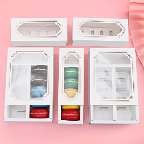Hicoosee 20 pezzi Macarons Box per 5 Macaron Container Cassetto tipo Macaron scatole Cookie dolci Dessert Party regalo scatola con finestra trasparente