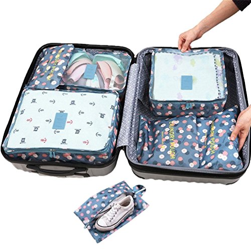 HiDay 7 Set Sistema di Cubo di Viaggio - 3 Cubi di Imballaggio + 3 Sacchetti + 1 Borsa Scarpe Premium - Perfetto di Viaggio Dei Bagagli Organizzatore