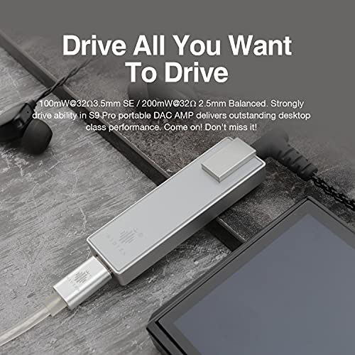 HIDIZS S9 PRO Balanced & Single-Ended Mini HiFi DAC & AMP, 768kHz/32Bit, DSD512 Portable Audio Decoding Amplifier for Android PC with Windows System (Black)