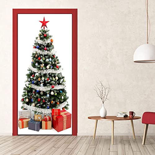 Hidyliu 15.2x78.7in Adesivi per Porte di Natale - Adesivi per Finestre di Natale Decalcomania Albero di Natale Adesivo Murale per Porta da Parete per Decorazione Vetrina(15,2x78,7 Pollici)