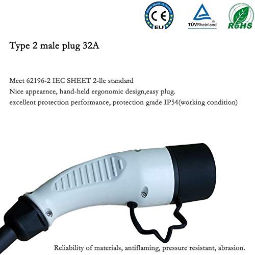 HiEVcar Cavo di Ricarica EV da Tipo 1 a Tipo 2 32 A per Tipo 1 Veicoli elettrici 16.4FT Auto Elettrica Cavo EV 7.4kW (Tipo 1 a Tipo 2 32A 5M)