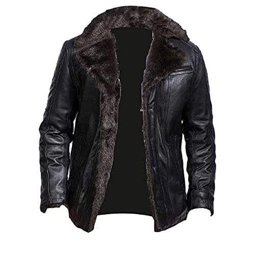 HiFacon - Giacca da uomo in pelle di pecora, colore: Nero Nero - Giacca in ecopelle in shearling L