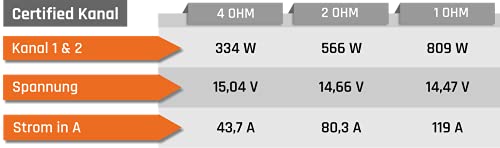 1000 Watt di potenza massima a 2 ohm, 1600 Watt di potenza massima a 1 ohm