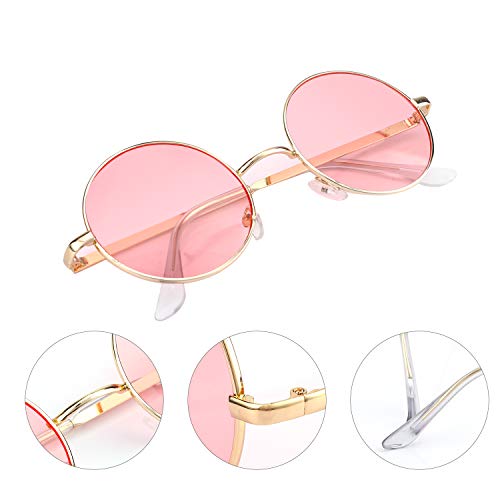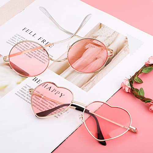 Hifot 2 Pack Hippy Occhiali Retro Round Occhiali a Forma di Cuore Occhiali da Sole per Hippie Fancy Dress Accessorio Vintage Occhiali da Sole con 2pcs Panno Occhiali, Cornice in Oro Rosa