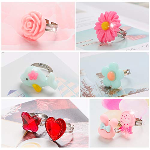 Hifot 24 Pezzi Anelli Regolabili per Ragazze, Anelli Gioielli con Principessa con Scatola a Forma di Cuore, Girl Pretend Play And Dress up Anelli per Bambini
