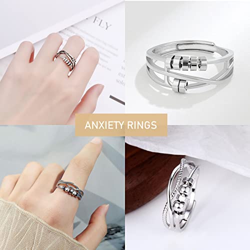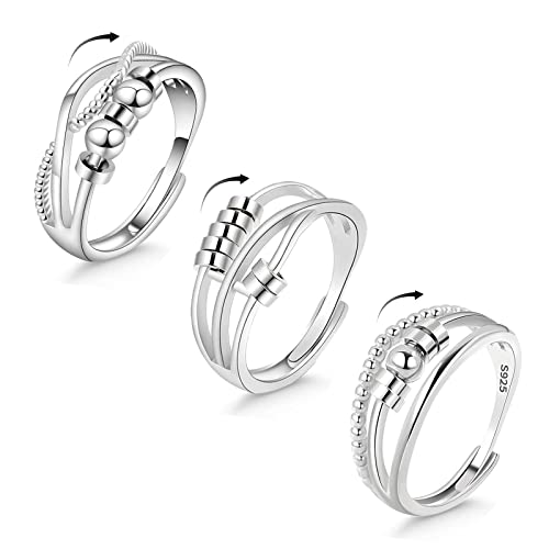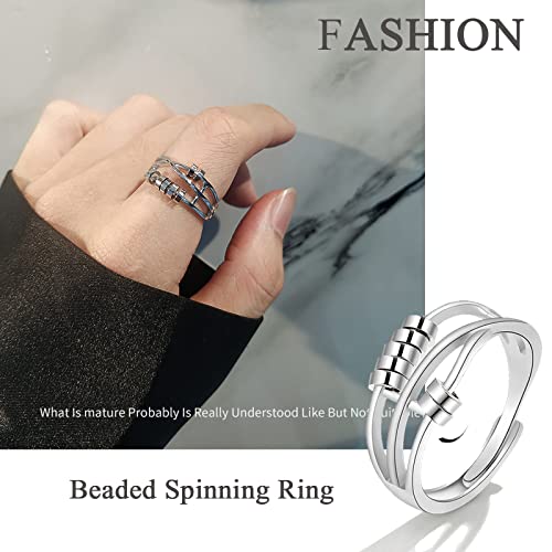 Hifot 3 Pezzi Anello Antistress Donna Argento, Anelli Donna Regolabili, Set Anelli Ansia Spinner Fidget Anello con Perline Antistress per Regalo Ragazza Uomo