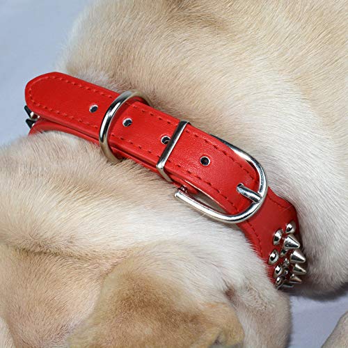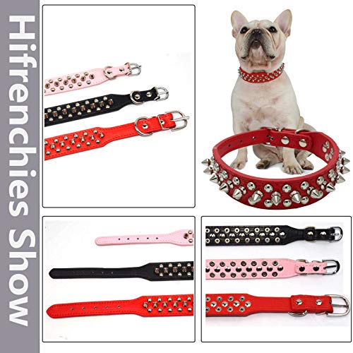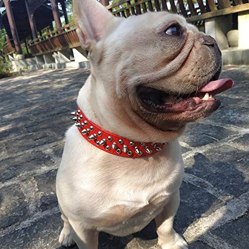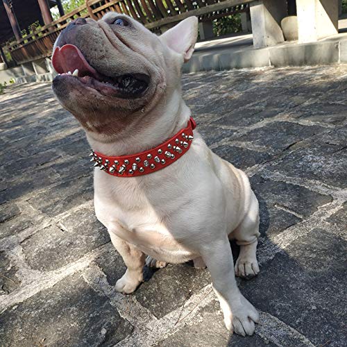 Hifrenchies Mushrooms Spiked Rivet Studded Dog Collar Adjustable Microfiber Leather Pet Collars for Frenchie/Bulldog/Pugs Suitable for Small Medium Large Dog(M,Red)
