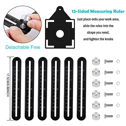 Hifrom Righello di Misurazione Multi Angolo, Strumento a 12 Lati in Lega di Alluminio, Righello Multifunzione Perforatore per Piastrelle per Costruttori, Falegnami, Piastrelle, Artigiani