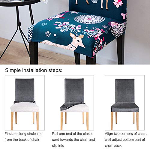 Materiale: questa fodera per sedia da pranzo elasticizzata stampata è realizzata in fibra di poliestere di alta qualità e tessuto elasticizzato misto spandex. È super morbida, resistente e antirughe. Questa fodera per sedia da pranzo può far sembrare la tua sedia come nuova ed è una vita familiare Il miglior compagno.
