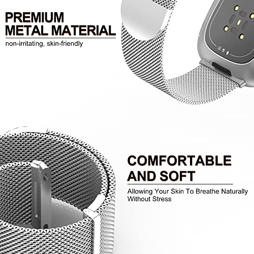 Higgs Cinturini Compatibile con Cinturino Fitbit Versa 3/Fitbit Sense/Sense 2 per Donna e Uomo, Cinturino Magnetiche Regolabili Doppie per Versa 3/Sense 2/Sense, Liscio Maglia Milanese Argento