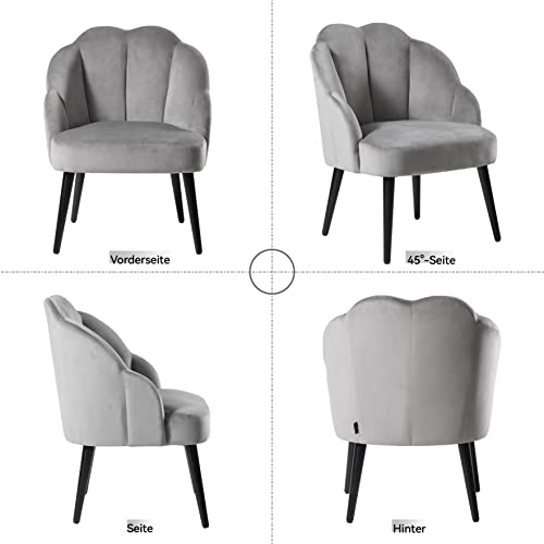HIC High in the clouds Sedia da toeletta in velluto grigio, con bracciolo, fino a 150 kg, con gambe in legno, Living Room Chair, design moderno, con braccioli, soggiorno, colore grigio
