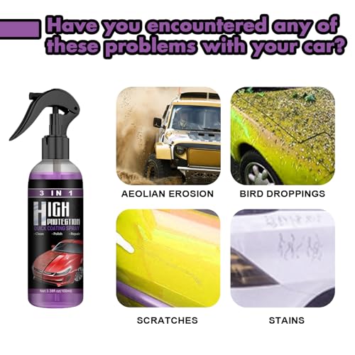 ❀ 【Protezione elevata e di lunga durata】 Nuovo spray per rivestimento rapido per auto 3 in 1 migliorato con formula nanotecnologica avanzata, l'aggiunta di spray per auto sulla superficie dell'auto forma uno strato protettivo che dura per mesi e garantisce una lucentezza duratura. Lo spray per rivestimento auto può rimuovere macchie d'acqua, ossidazioni e molti altri contaminanti che possono danneggiare la vernice dell'auto.