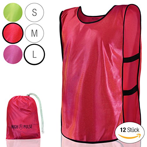 High Pulse Casacca da Allenamento (12 Pezzi) - Maglia per la marcatura di Squadre in allenamenti e Partite (Colore Rosso | Taglia L)