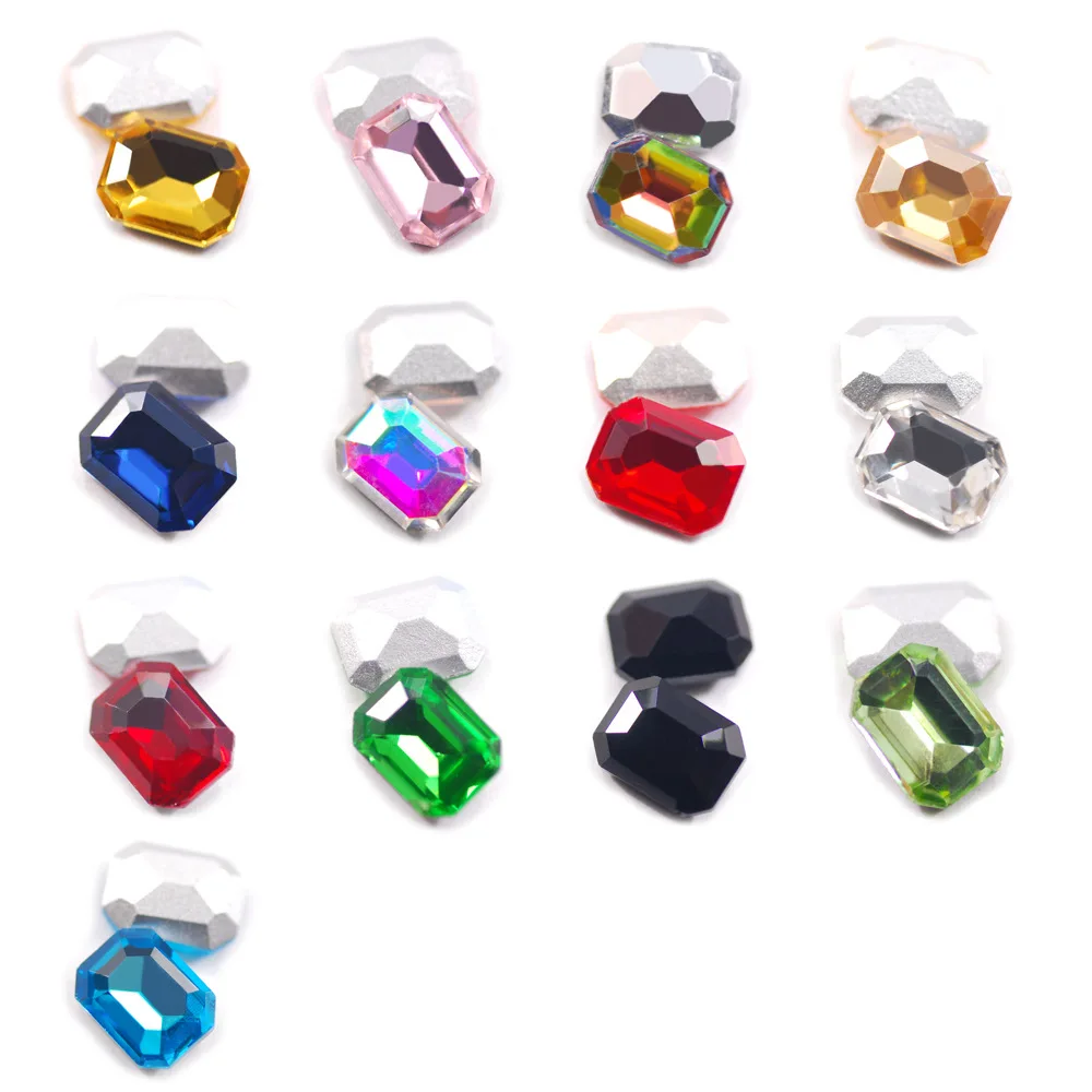 High Quality New 20pcs/ Package 6X8mm Rectangular Octagon Color Glass Crystal Diamond 3D Charm DIY Nail Accessories