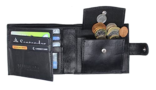Men's High Quality Luxury Soft Black Tri Fold Leather Wallet - Id Window - Credit Debit Card Holder - Coin Pocket